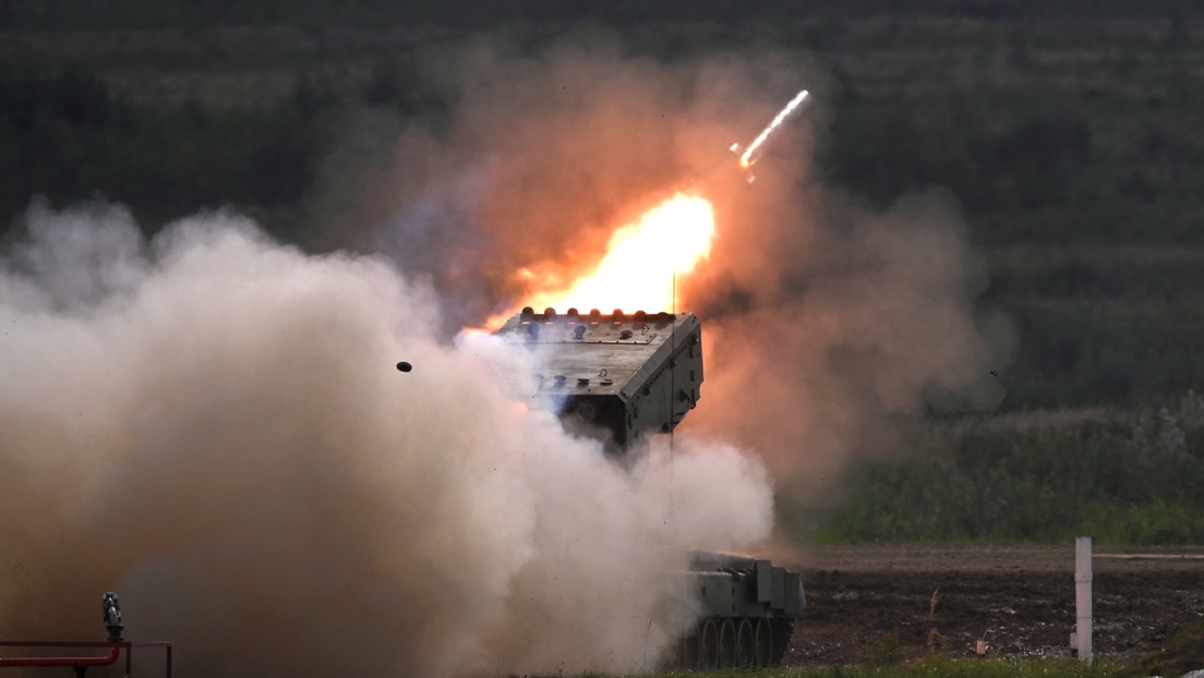 Ein Mehrfachraketenwerfer ("schweres Flammenwerfersystem") des Typs ТОS-1А Solnzepek Bild: Maksim Blinow / Sputnik
