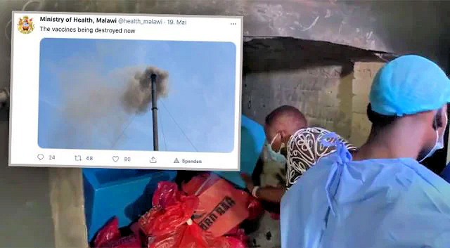 Zurück zu Medienwirksame Impfstoff-Verbrennung: Malawi vernichtet 20.000 überfällige AstraZeneca-Seren
