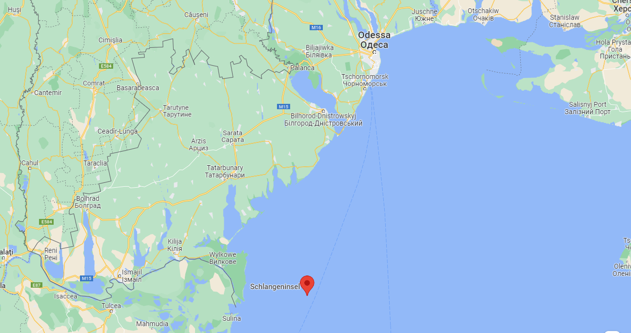 Die Schlangeninsel bildet eine strategisch wichtige Position nahe der Handelsrouten in Richtung Schwarzmeerhafen Odessa. Bild: Screenshot RT DE / Eigenes Werk