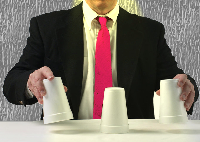 Hütchenspiel, Betrug, Manipulation und falsches Spiel (Symbolbild)