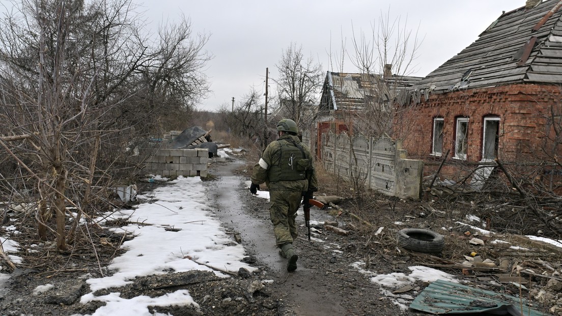 Archivbild: Ein russischer Soldat im zerstörten Marjinka in der Volksrepublik Donezk Bild: Jewgeni Bijatow / Sputnik