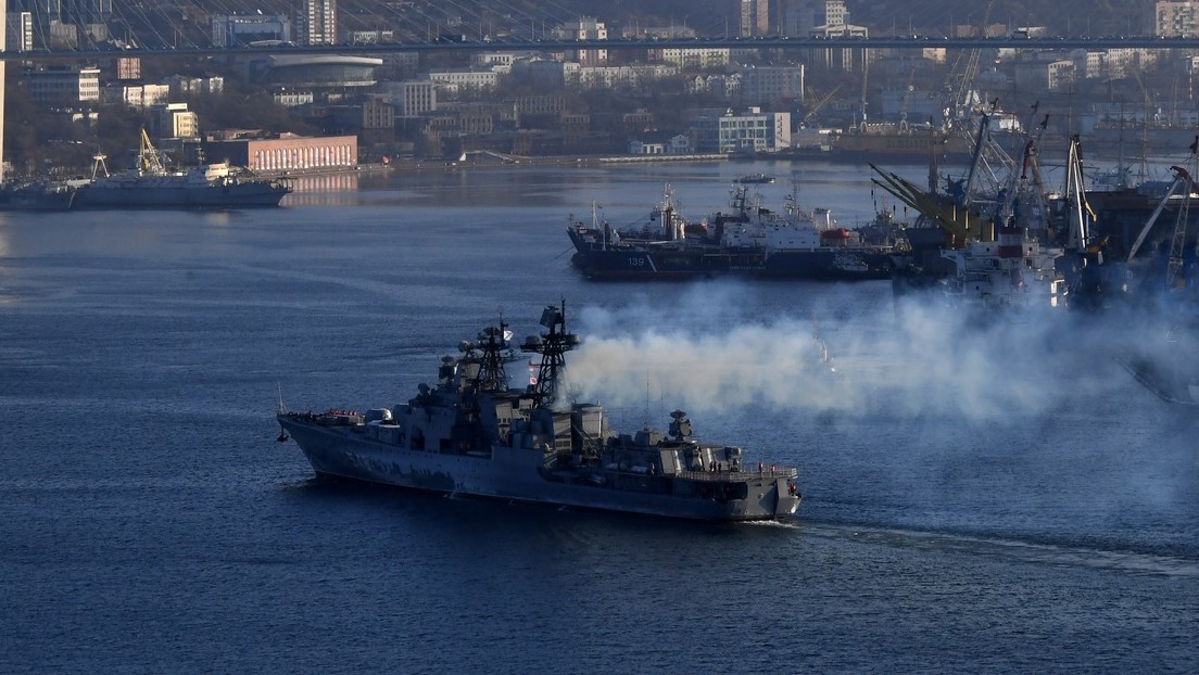 Symbolbild: Das große russische U-Jagd-Schiff "Admiral Pantelejew" in der Bucht das Goldene Horn in Wladiwostok. Bild: Sputnik / WITALI ANKOW