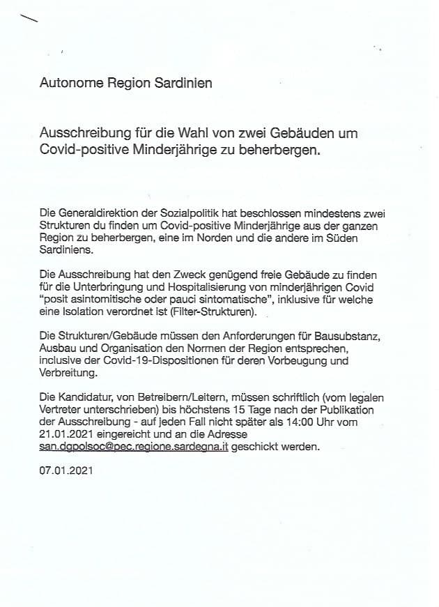 Deutsche Übersetzung der Ausschreibung vom 07.01.2021