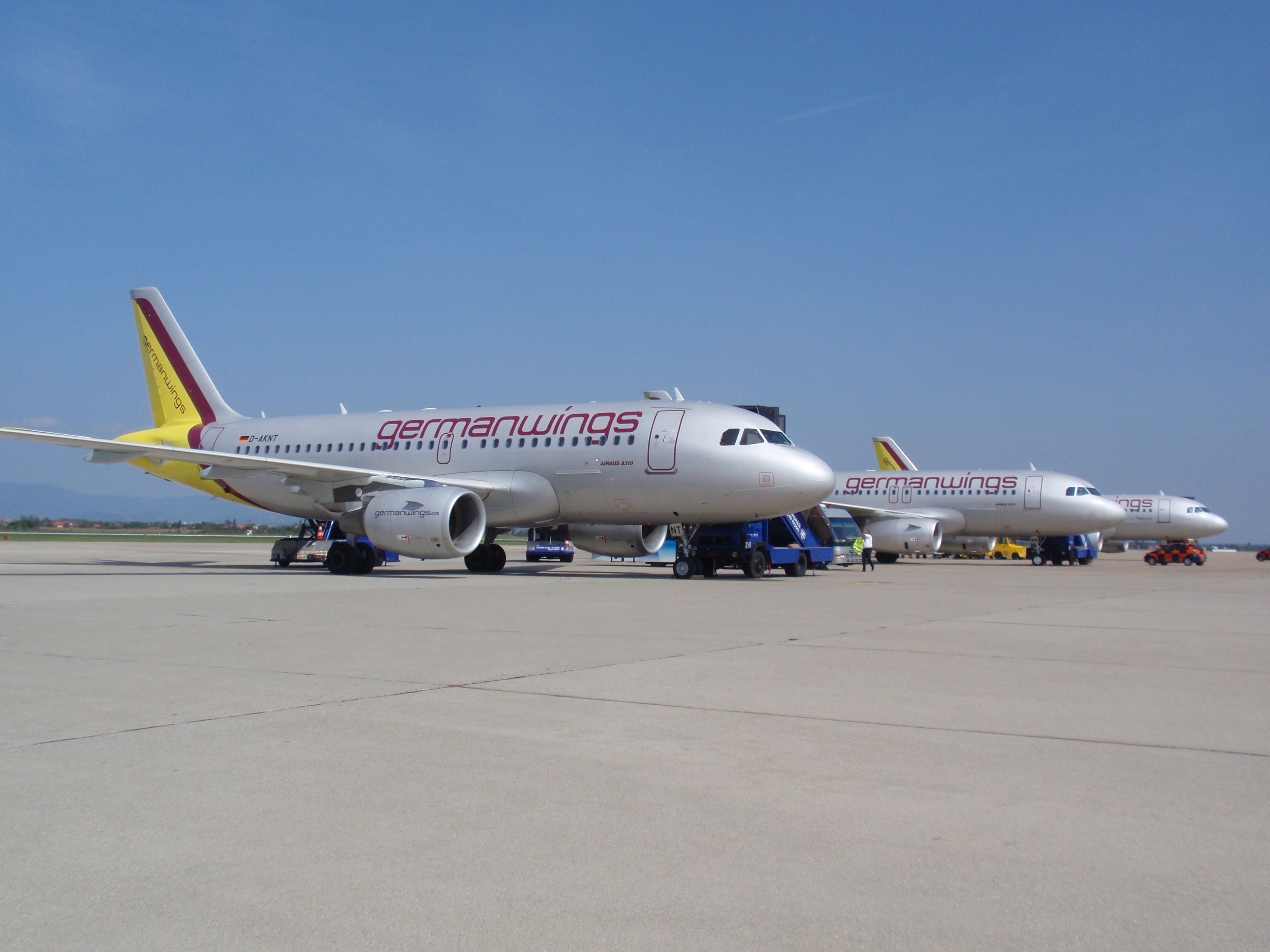 Mehrere Airbus A319 der Germanwings am Flughafen.