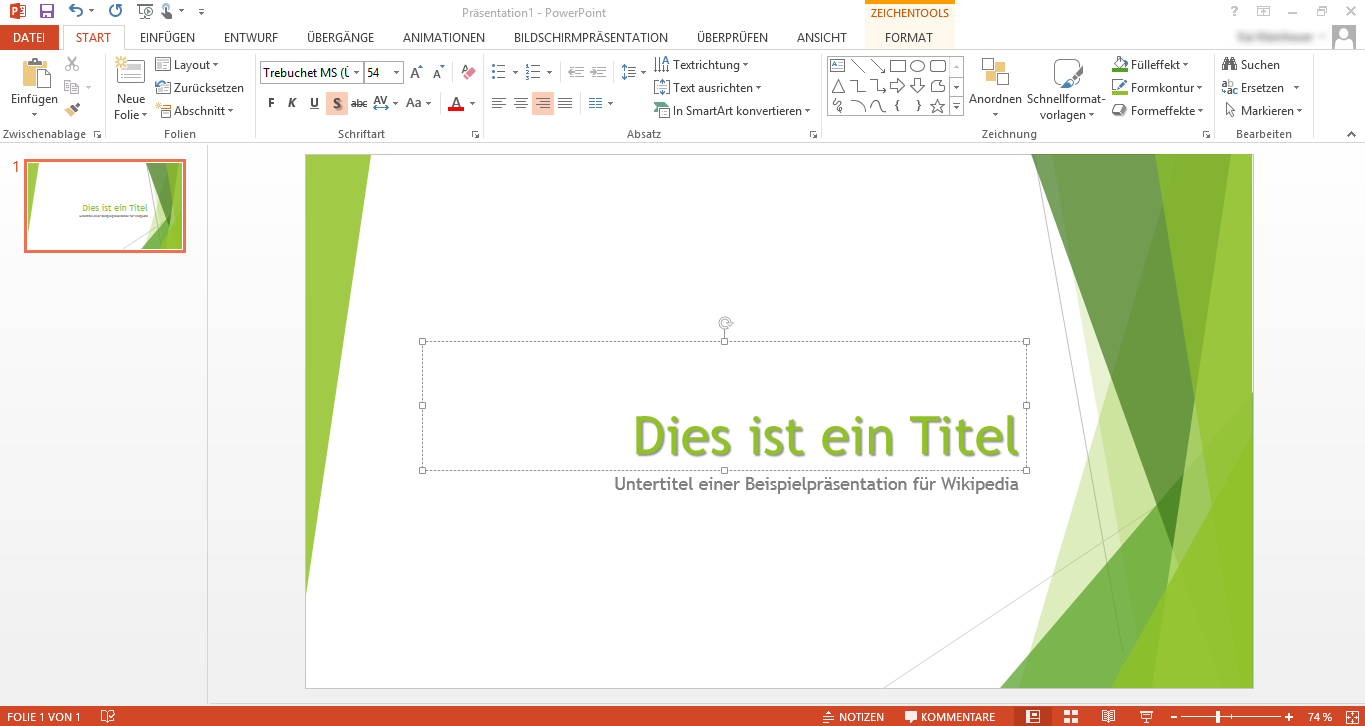 Screenshot von der Erstellung einer Titelfolie in PowerPoint