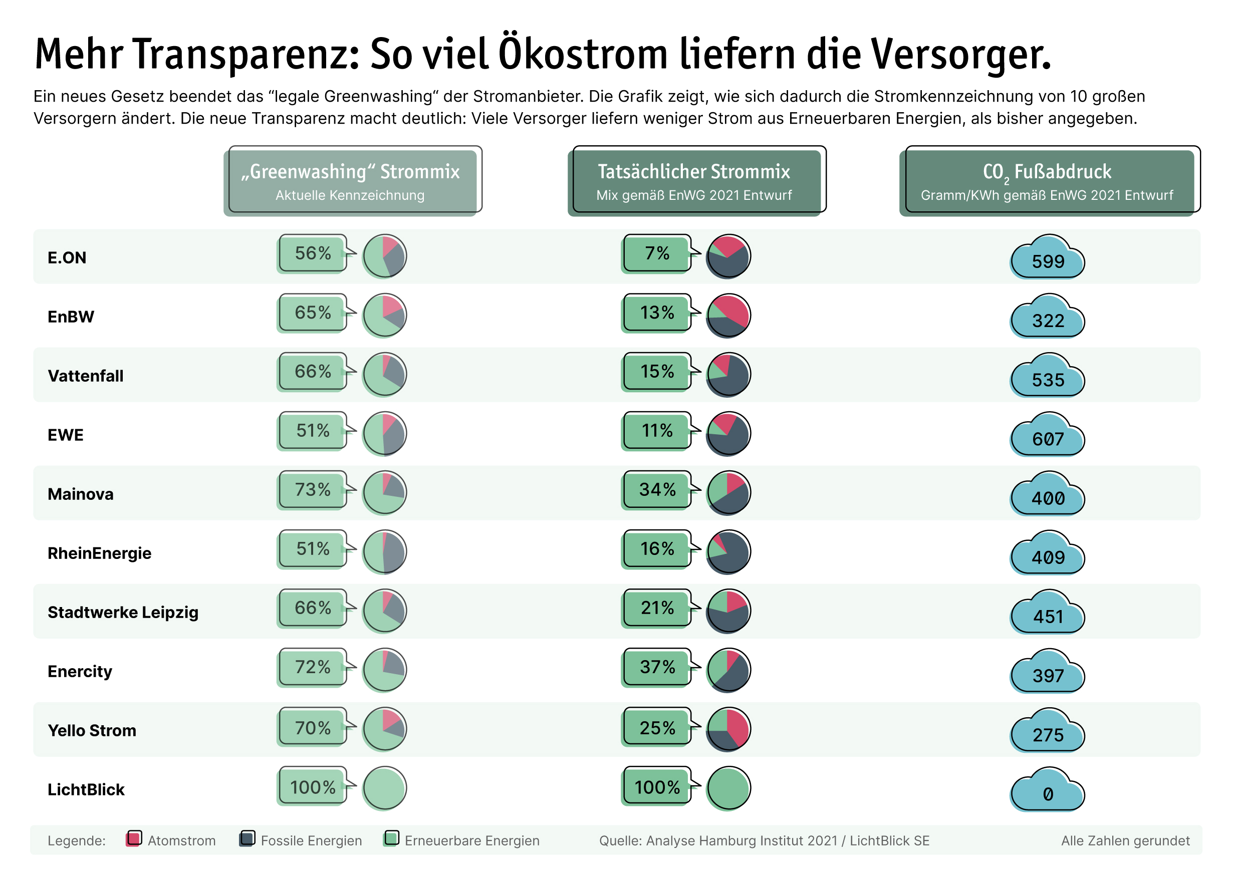 Der Ökostrom-Anteil im Strommix deutscher Versorger ist meist deutlich geringer als offiziell angegeben. Bild: LichtBlick SE Fotograf: LichtBlick SE