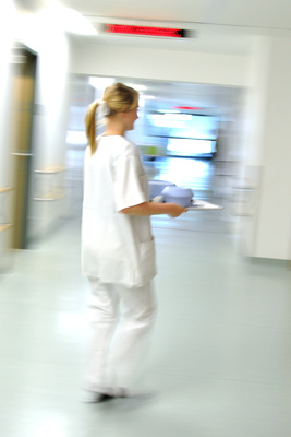 Eine Krankenschwester im typischen Dauerstress und mit vernachläßigbarer Vergütung (Symbolbild)