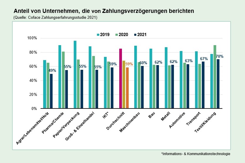Der Anteil von deutschen Unternehmen, die von Zahlungsverzögerungen berichten, ist 2021 auf 59% zurückgegangen. Bild: Coface Deutschland Fotograf: Coface Deutschland