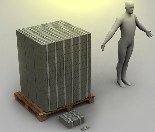 Größenvergleich: Das sind 100 Millionen in 100 Euro Scheinen. Vor der Europallette liegt eine Million.
