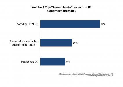 Welche 3 Top-Themen beeinflussen Ihre IT-Sicherheitsstrategie? Grafik: "obs/Steria Mummert Consulting/© Steria 2014"