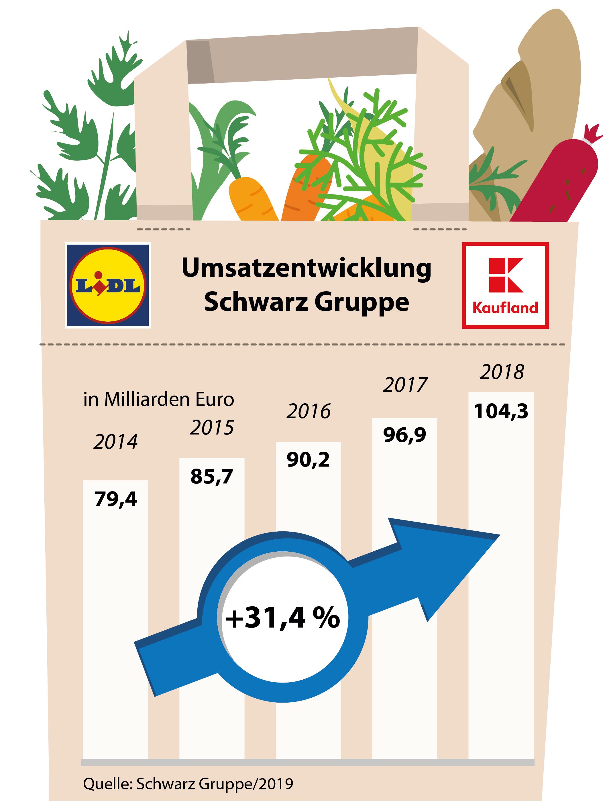 Umsatzentwicklung Schwarz Gruppe 2014 - 2018 / Bild: "obs/Schwarz Dienstleistung KG/Schwarz Gruppe 2019"