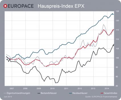 EUROPACE Hauspreis-Index EPX Juni 2014 / Grafik: "obs/Europace AG"