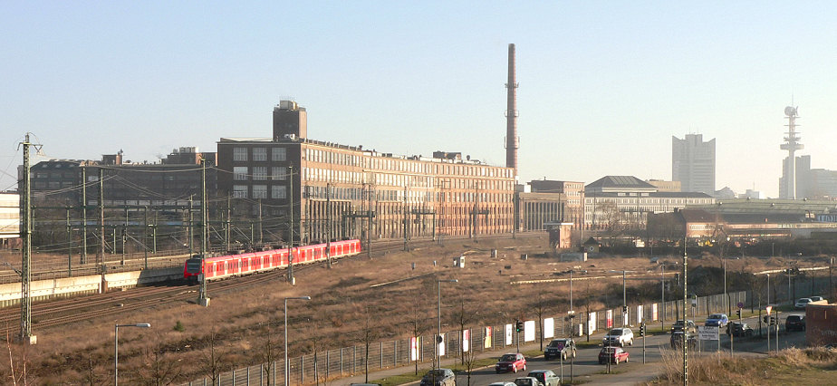 Rückseite des Continental-Werkes in Hannover-Vahrenwald, Ansicht von der nahegelegenen Bahnlinie aus
