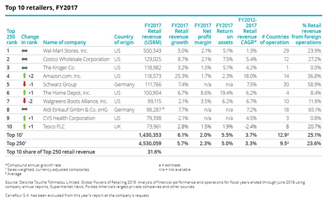 Zurück zu Deloitte "Global Powers of Retailing 2019": Ein gutes Jahr für den Handel