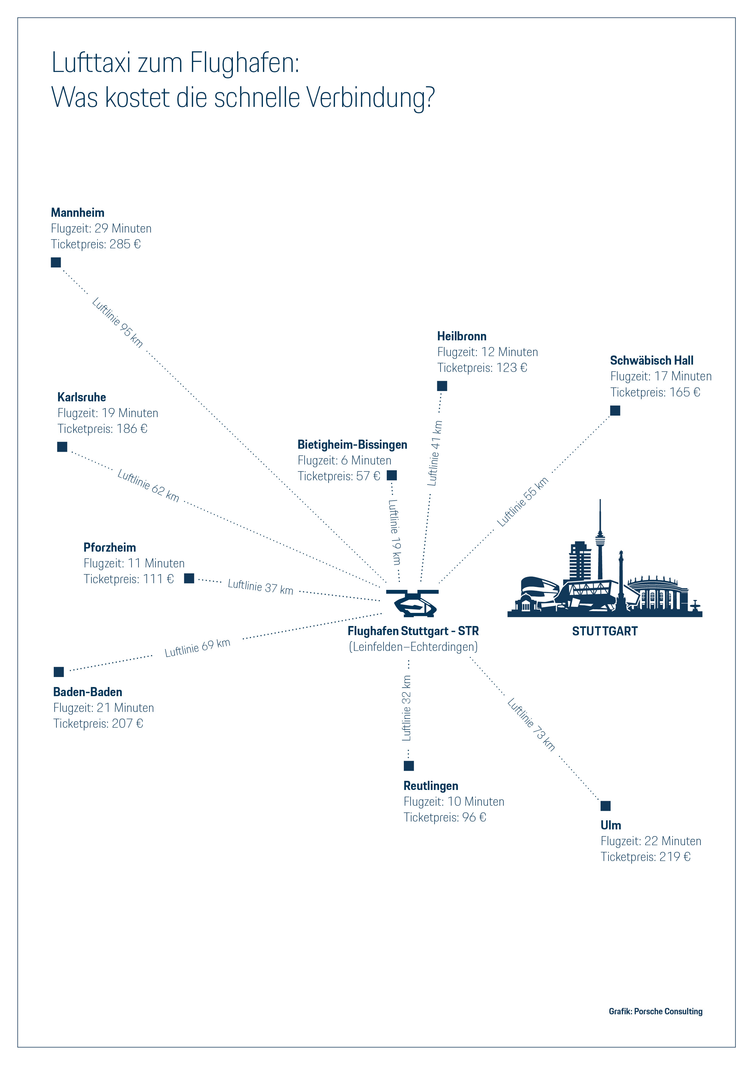 Schnell, komfortabel und ohne Stau zum Flughafen Stuttgart anreisen - das könnte schon im Jahr 2025 Wirklichkeit werden. Bild: "obs/Porsche Consulting GmbH"