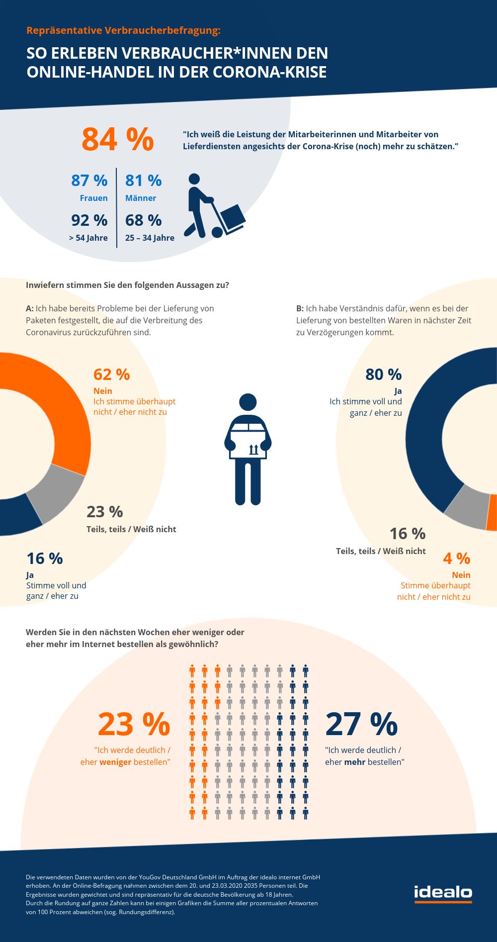 Verbraucherbefragung zu Corona: 8 von 10 Deutschen haben Verständnis für Verzögerungen im Online-Handel / Bild: "obs/Idealo Internet GmbH/idealo internet GmbH"