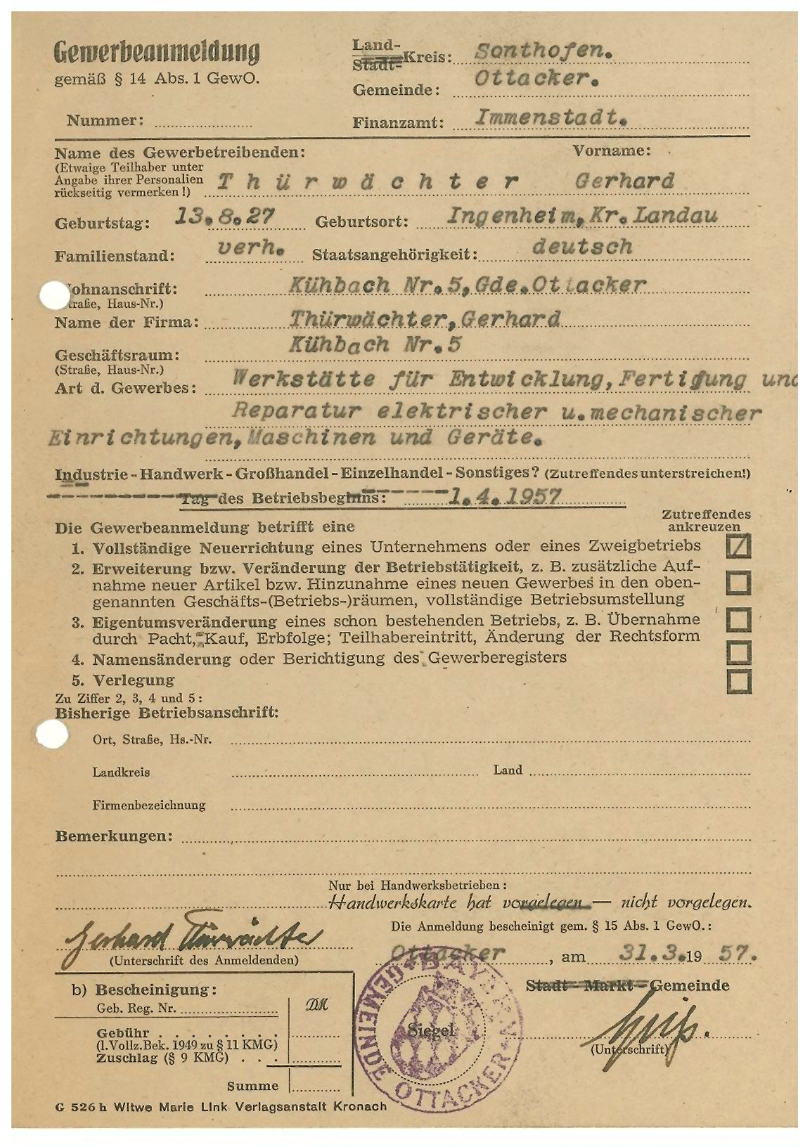 Gewerbeanmeldung von 1957 (Symbolbild)