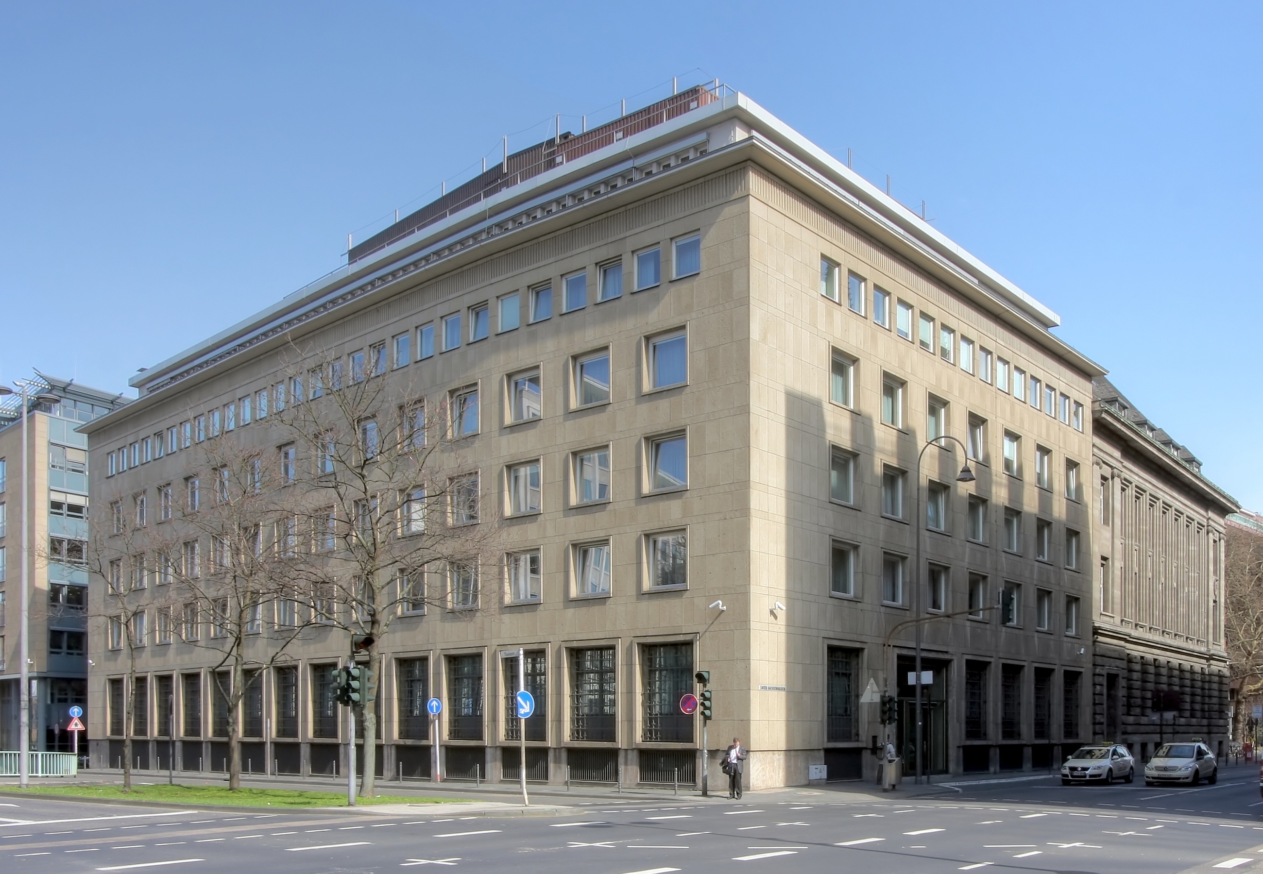 Denkmalgeschütztes Gebäude von Sal. Oppenheim, Unter Sachsenhausen 4, Köln. Ecke Tunisstraße: Architekt: Fritz August Breuhaus de Groot. Baujahr: 1952/53
