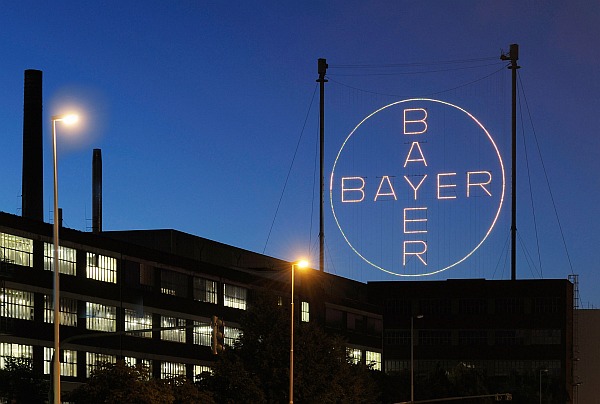 Das Bayer-Kreuz bei Nacht. Bild: Bayer AG