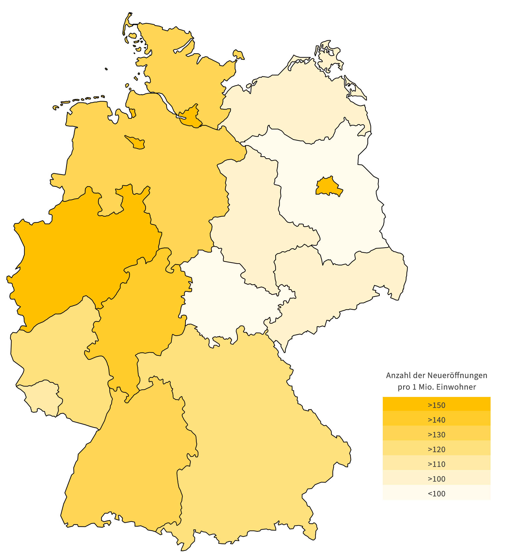 Neueröffnungen: Der Osten hinkt deutlich hinterher