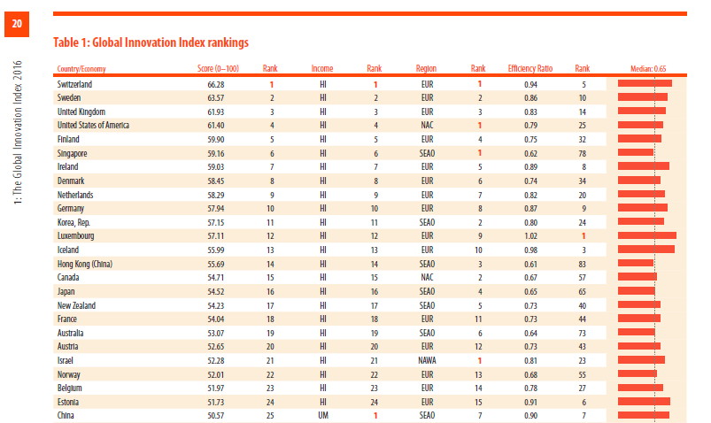 Globaler Innovationsindex 2016 / Bild: "obs/A.T. Kearney"
