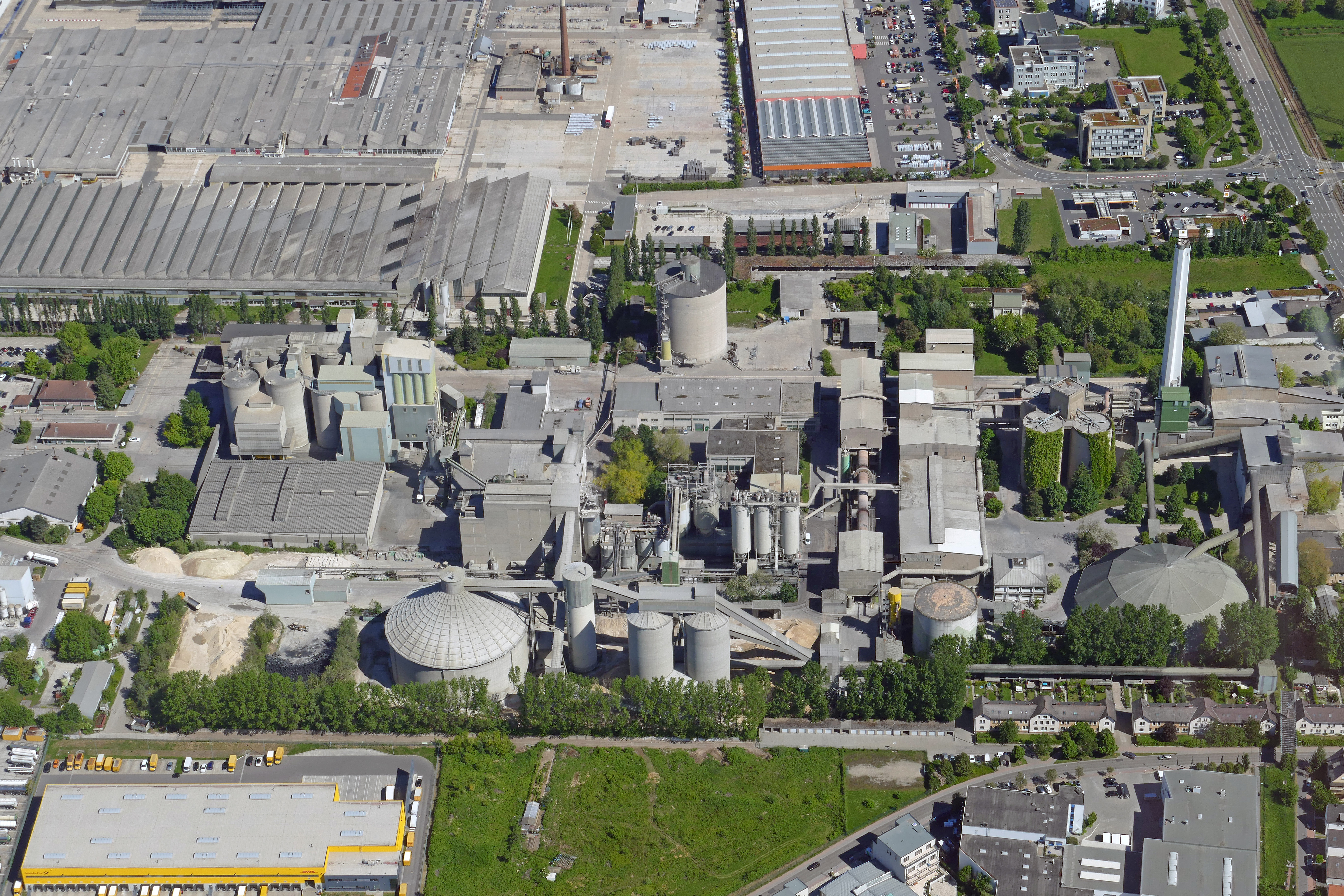Luftaufnahme des Produktionsstandortes Leimen der HeidelbergCement AG