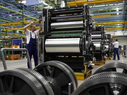 Montage von Druckwerken für die Speedmaster XL 105 im Werk Wiesloch-Walldorf. Bild: obs/Heidelberger Druckmaschinen AG