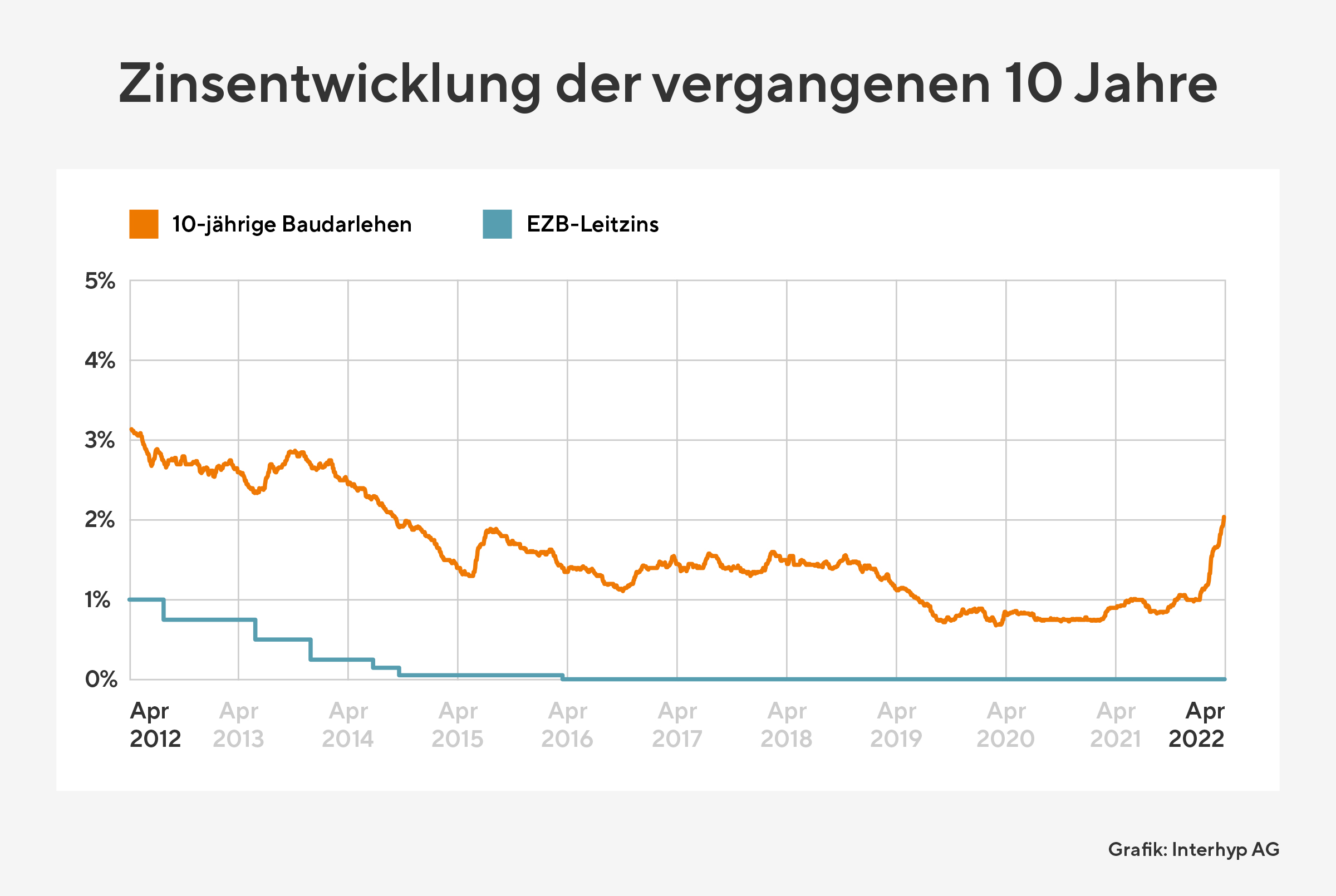 Bauzinsentwicklung in den vergangenen zehn Jahren laut Interhyp Bild: Interhyp AG Fotograf: Interhyp