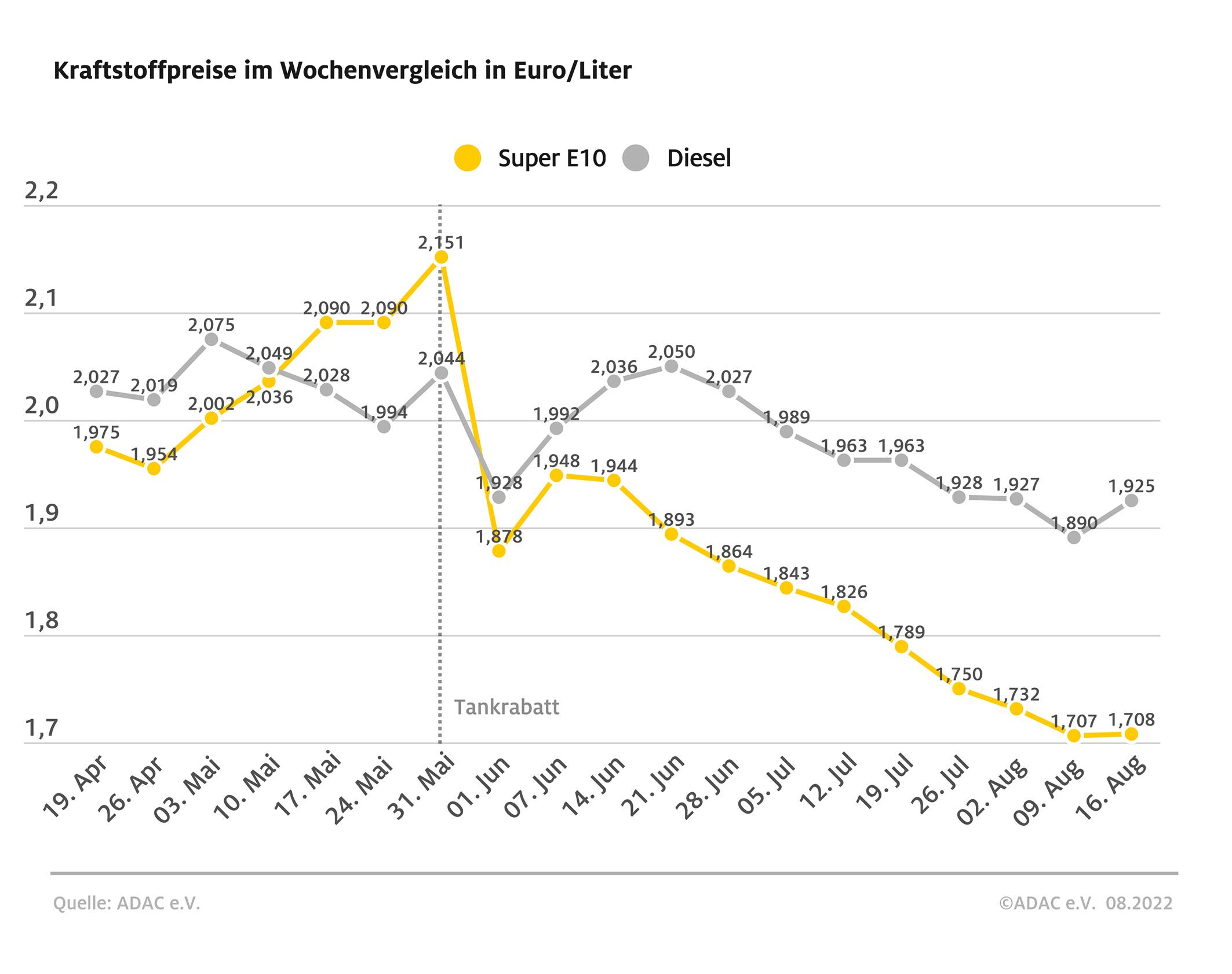 Kraftstoffpreise im Wochenvergleich Bild: ADAC Fotograf: © ADAC