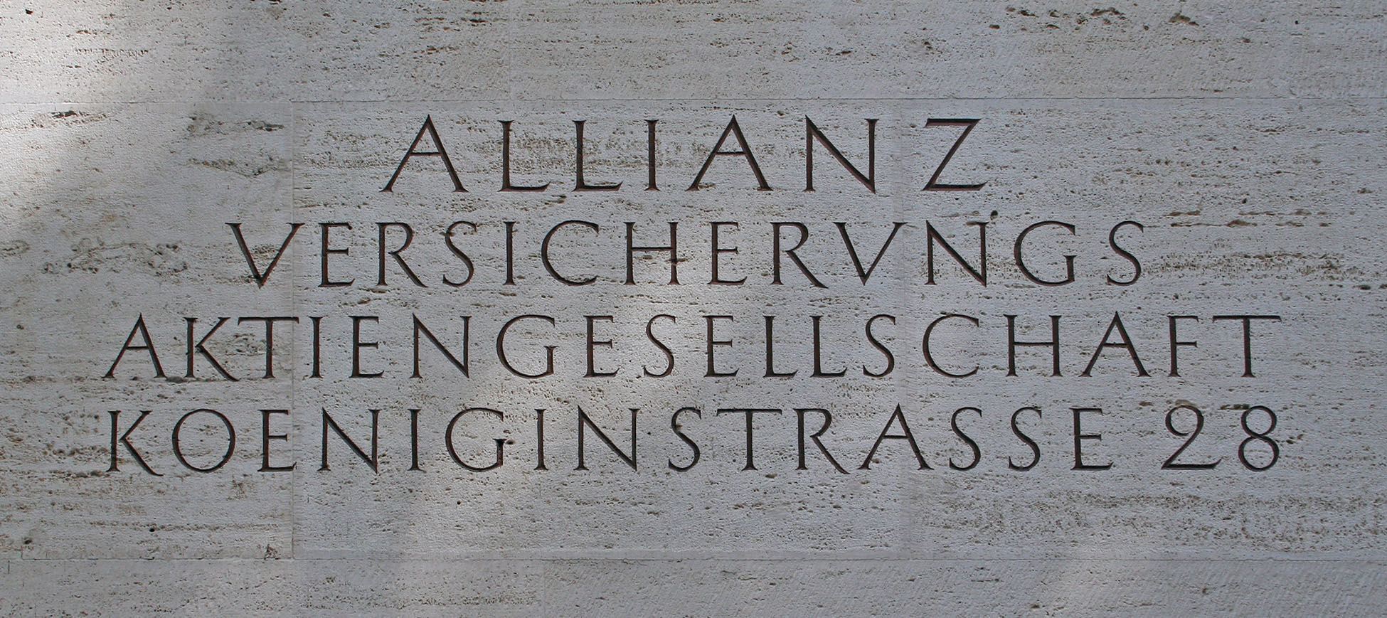 Inschrift des Firmennamens „Allianz Versicherungs Aktiengesellschaft“ am Hauptsitz der Allianz