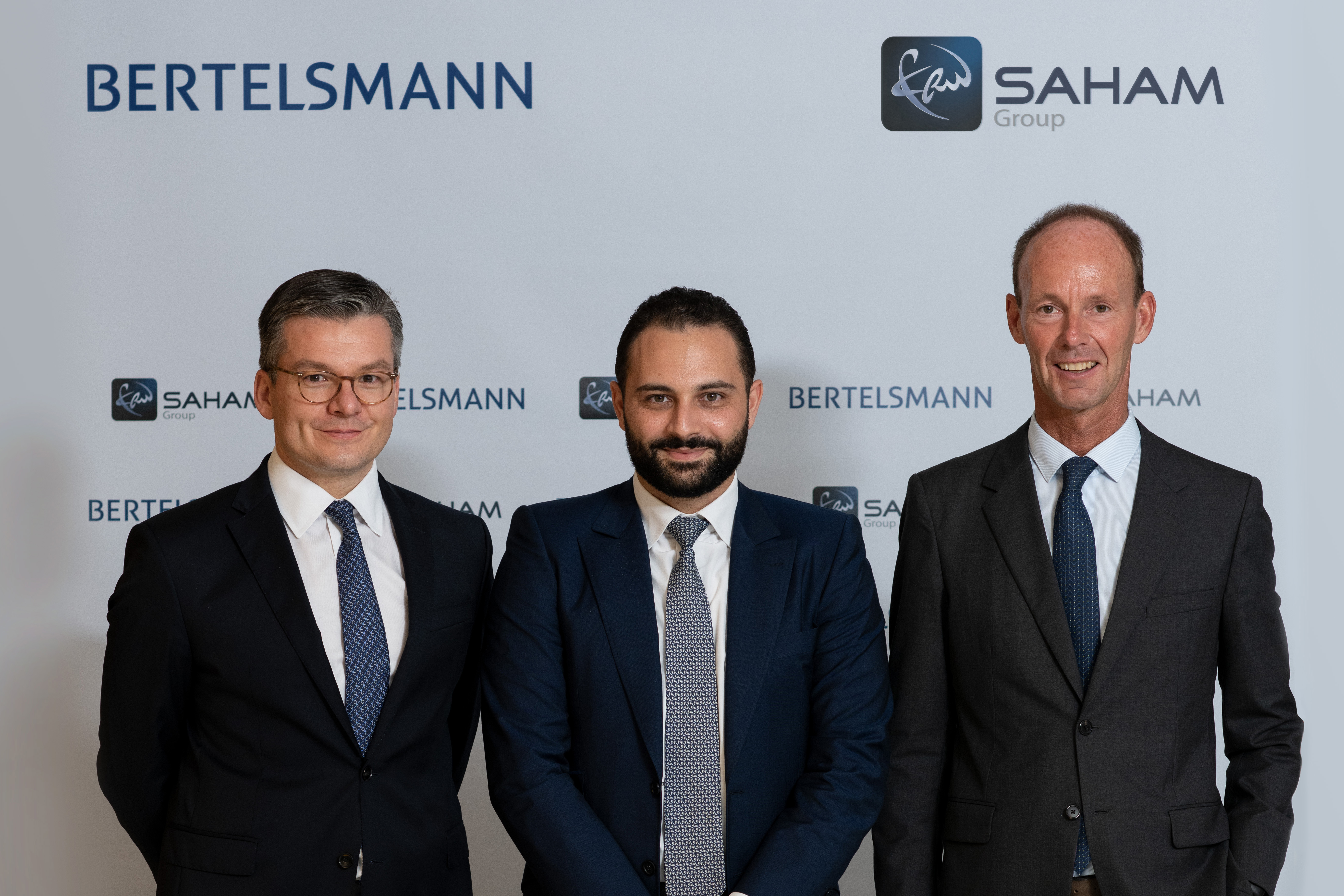 Von links: Thomas Mackenbrock (CEO Arvato CRM Solutions), Moulay Mhamed Elalamy (Repräsentant der Saham Gruppe) und Thomas Rabe (Vorstandsvorsitzender von Bertelsmann).