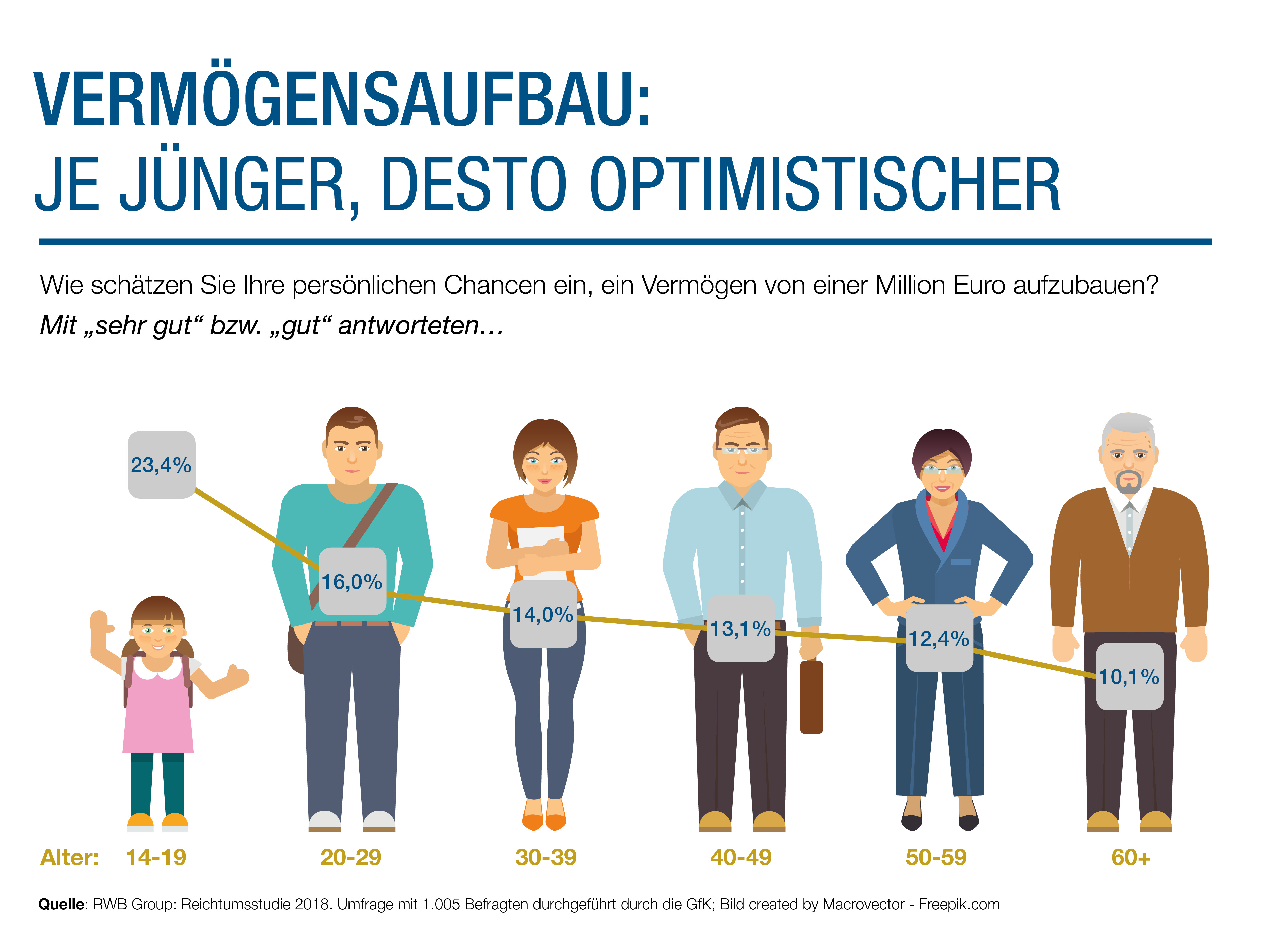 Reichtumsstudie: Junge sind beim Vermögensaufbau optimistischer / Junge Generationen sind beim Vermögensaufbau optimistischer als ältere Bild: "obs/RWB Group AG/RWB Group/Bild: Macrovector"