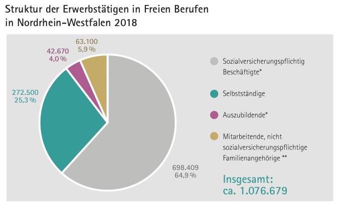 Struktur der Erwerbstätigen in Freien Berufen in Nordrhein-Westfalen 2018. Bild: "obs/Verband Freier Berufe im Lande Nordrhein-Westfalen e. V./InDeMa, Manfred Wieland"