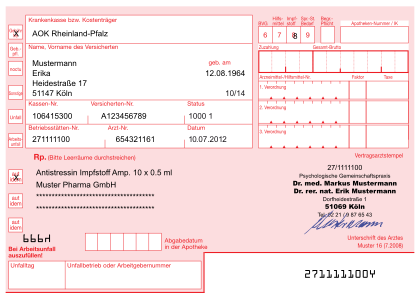 Muster 16: Formular für Arzneimittelverordnungen (deutsches Krankenkassenrezept)