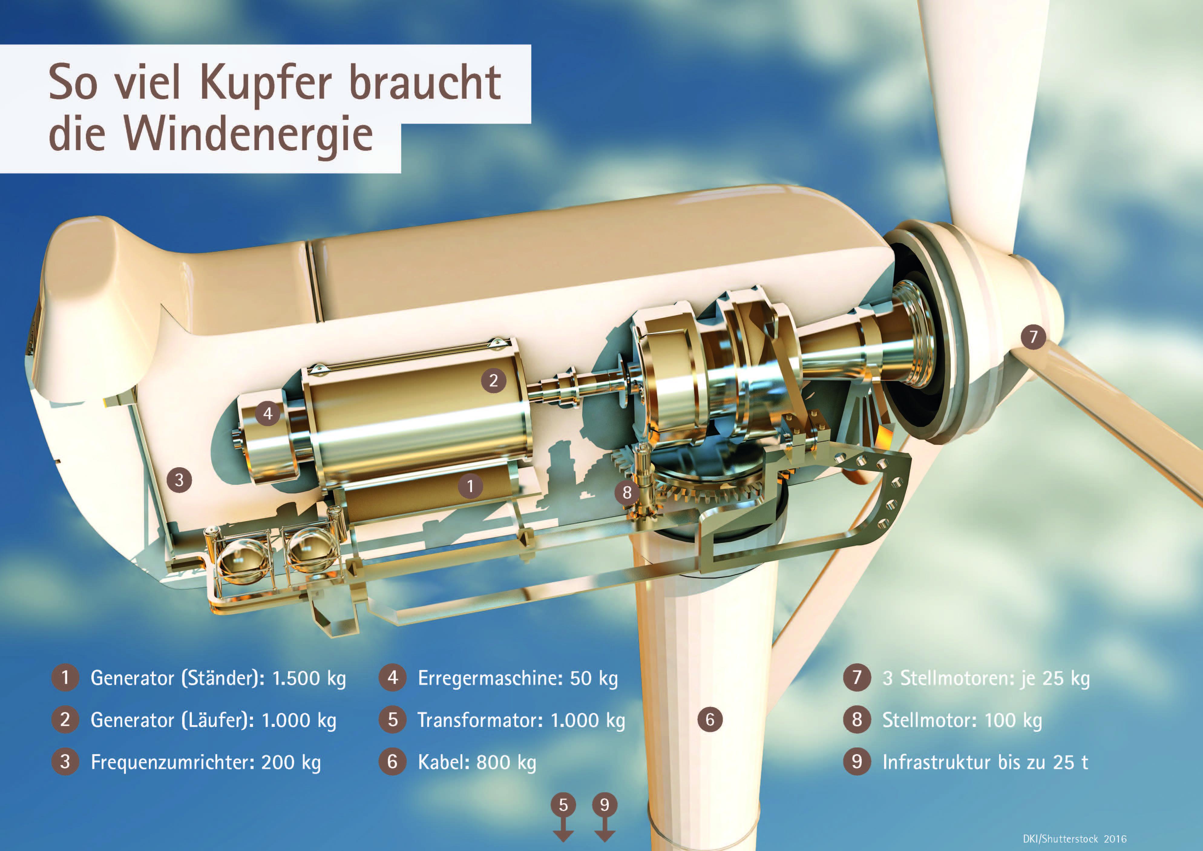 Über 30 Tonnen Kupfer für Windkraftanlagen: Deutsches Kupferinstitut Berufsverband e.V. Fotograf: DKI/DWS