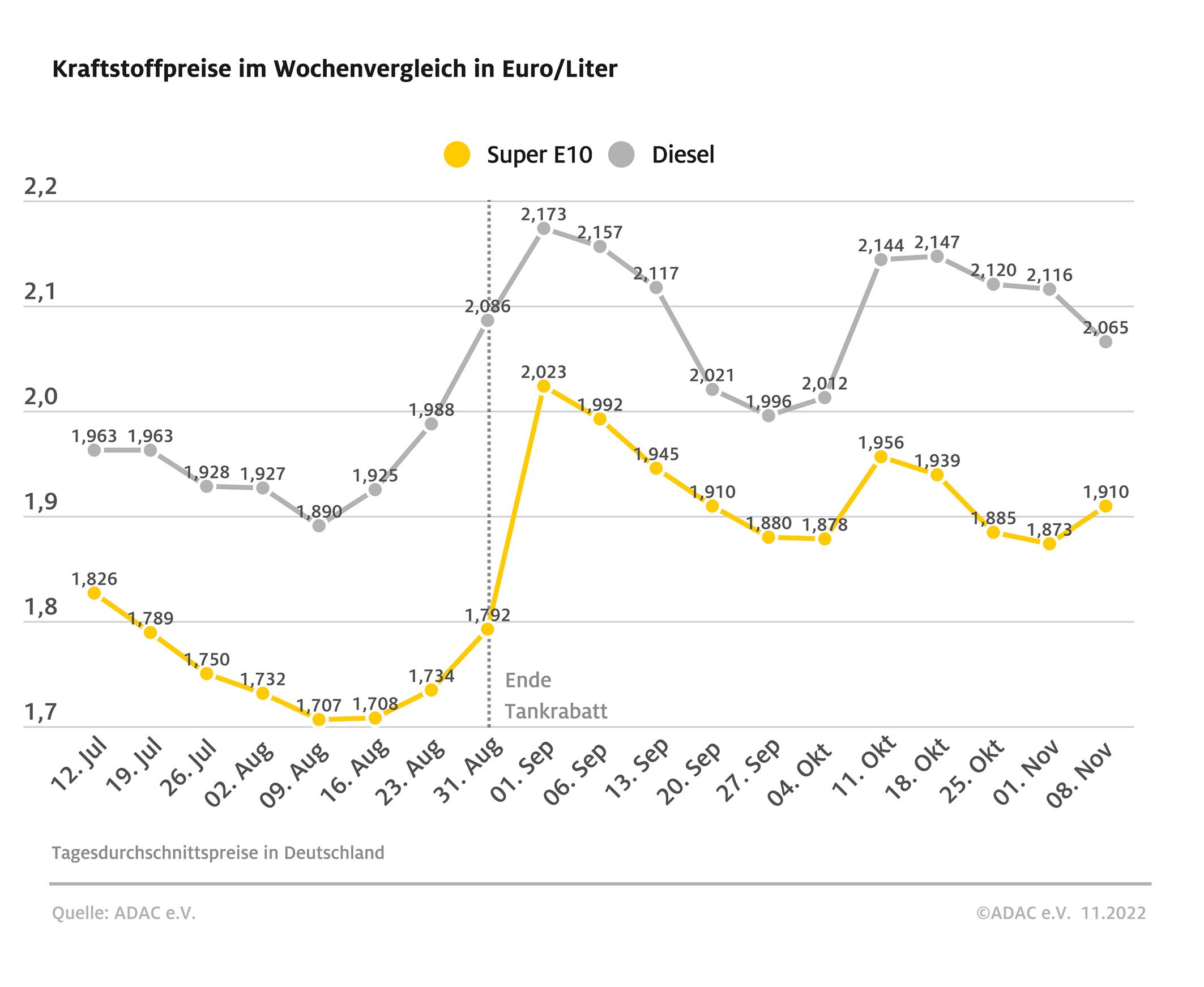 Kraftstoffpreise im Wochenvergleich Bild: ADAC Fotograf: © ADAC