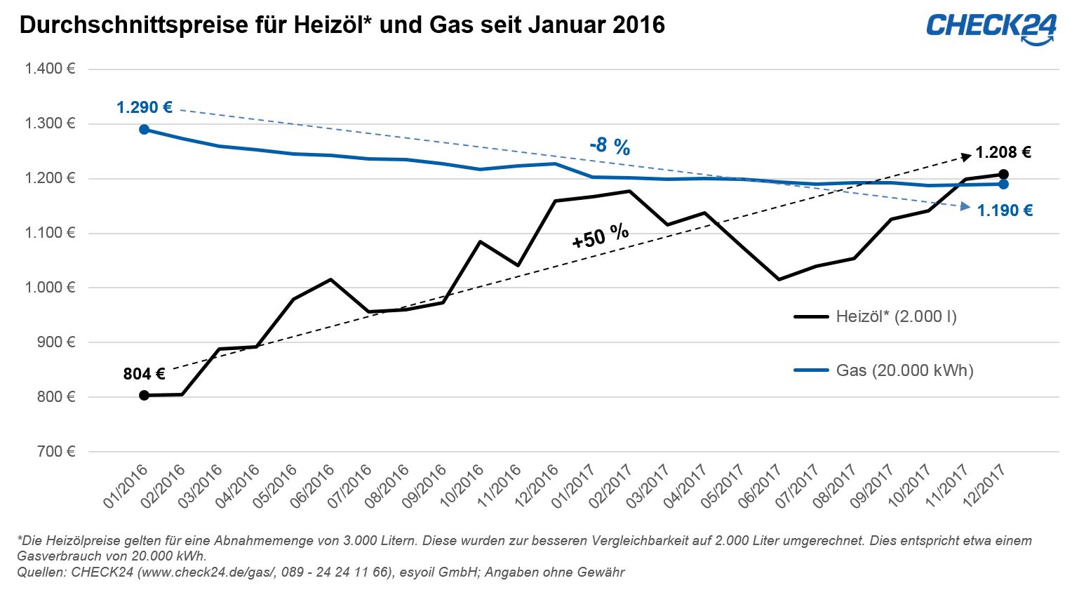 Zurück zu Heizöl so teuer wie zuletzt 2015, Gaspreise weiter im Abwärtstrend