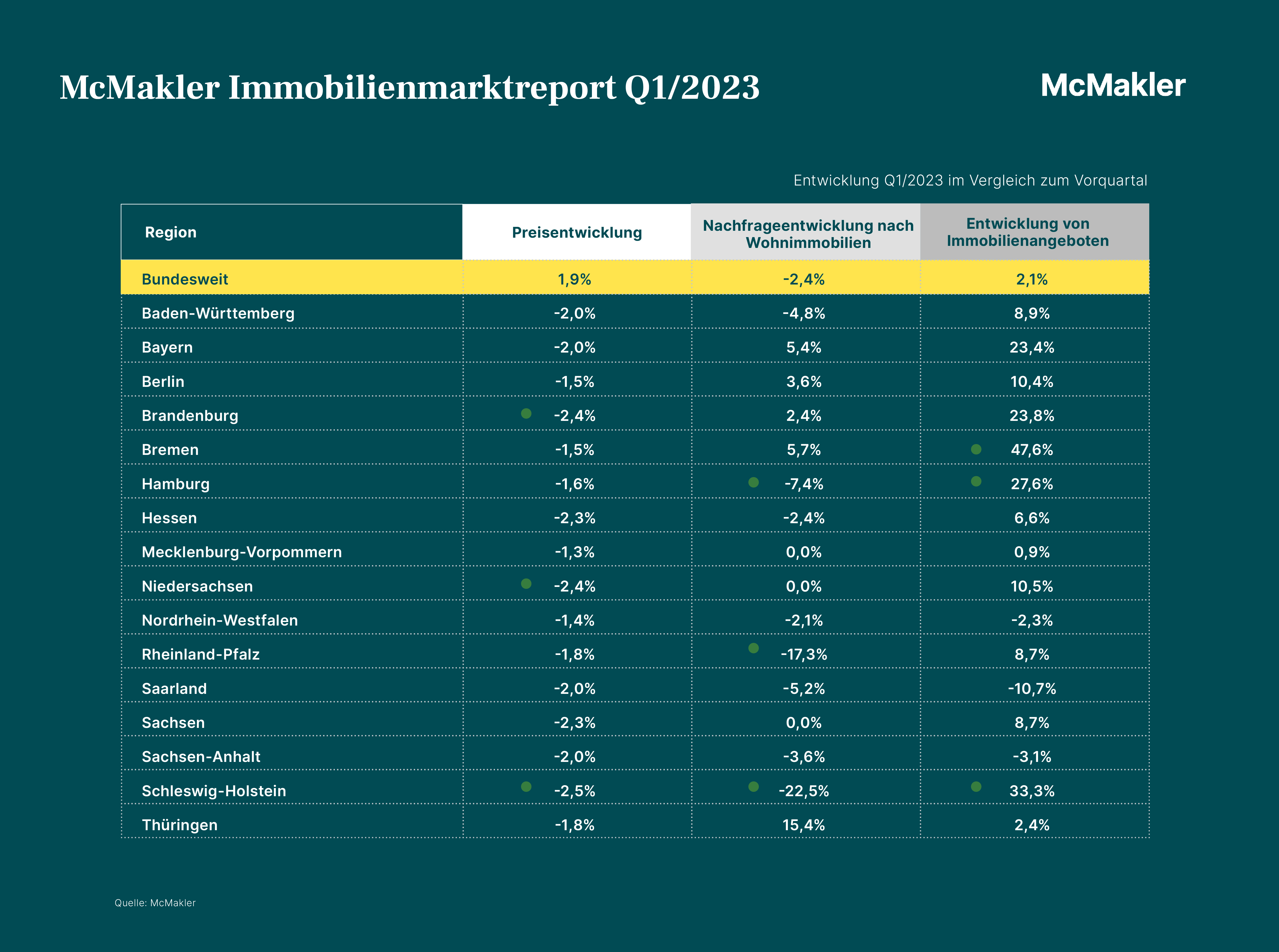 Zurück zu Marktreport: Immobilienpreise im 1. Quartal 2023 weiter rückläufig - Käufer bringen mehr Eigenkapitalanteil ein