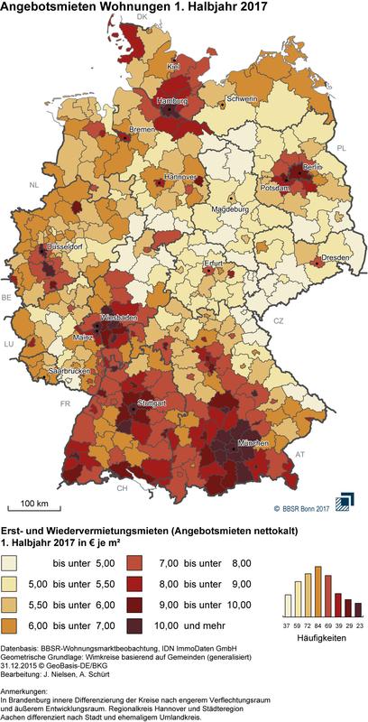 Angebotsmieten im 1. Halbjahr 2017 Quelle: BBSR (idw)
