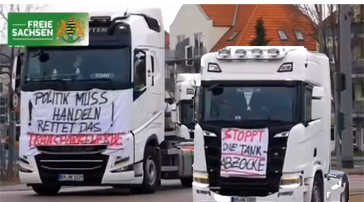 Zurück zu Schluss mit der Spritpreis-Abzocke: Protestkonvoi von Sachsens Brummi-Fahrern in Dresden
