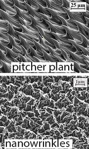 Oberfläche der Kannenpflanze (oben) und der Beschichtung. Bild: sydney.edu.au