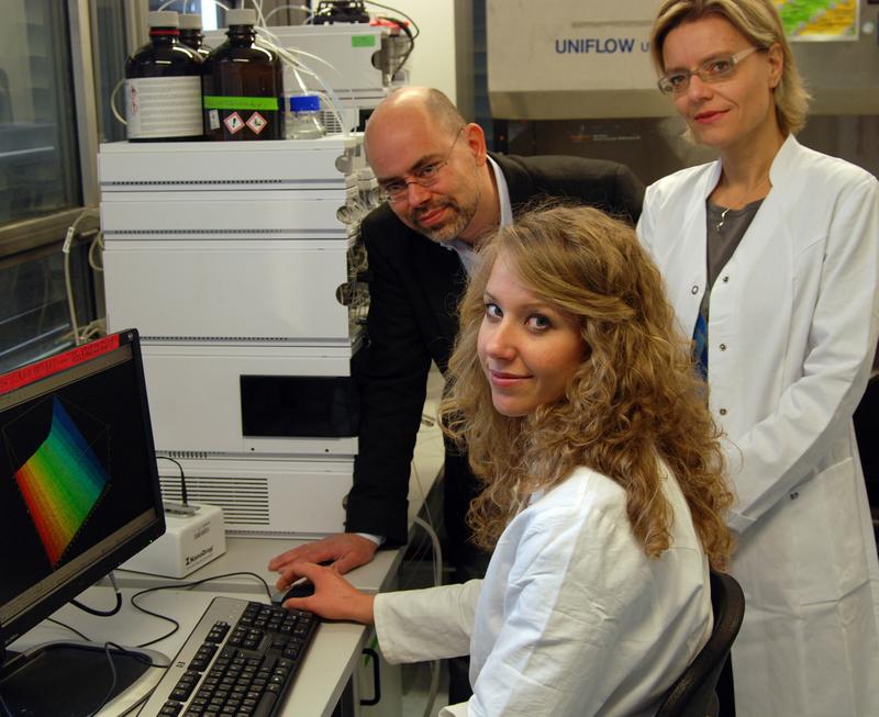 Professor Volker F. Wendisch, Mitarbeiterin Sabine Heider und Dr. Petra Peters-Wendisch (v. l.) wollen Bakterien dazu bringen, Methanol in nützliche Stoffe für die Industrie umzuwandeln. Quelle: Universität Bielefeld (idw)