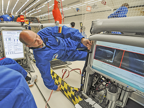 Carsten Killer verfolgt die Entmischung der Mikropartikel am Bildschirm während einer Parabe. Bild: Copyright: Tim Bockwoldt (idw)