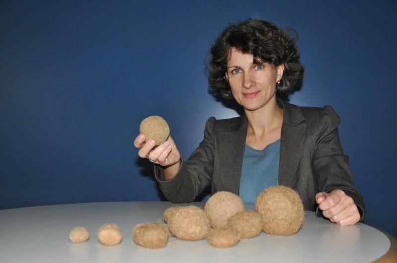 Professorin Dr. Katharina Kilian-Yasin, Projektleiterin, mit "Seebällen", die aus abgestorbenen Teil Quelle: Hochschule Pforzheim (idw)