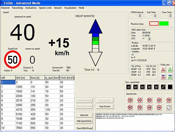 Anzeige des experimentellen Navigationssystems
