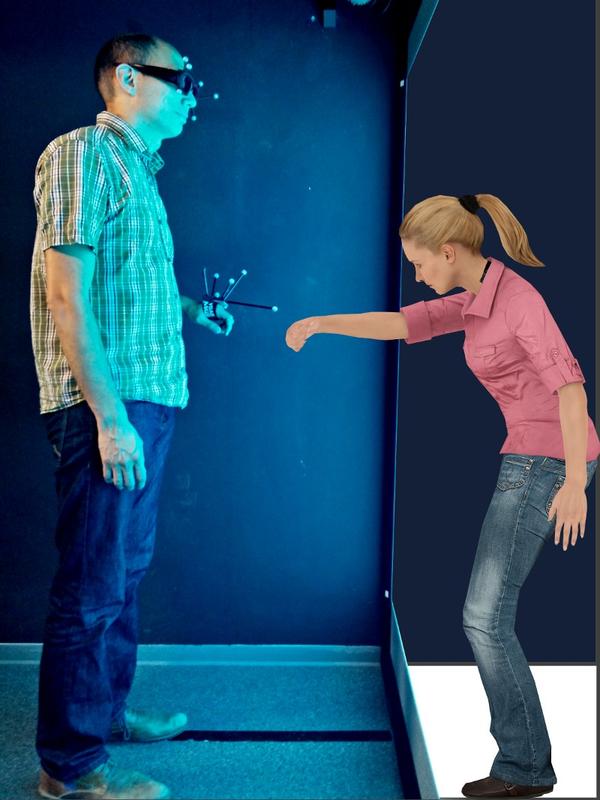 Forscher im Versuchsaufbau mit Avatar Quelle: Stephan de la Rosa / Max-Planck-Institut für biologische Kybernetik (idw)