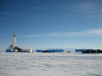 Bohrturm auf dem Ross-Schelfeis in der Antarkis. Foto: T. Falconer, Victoria University Wellington
