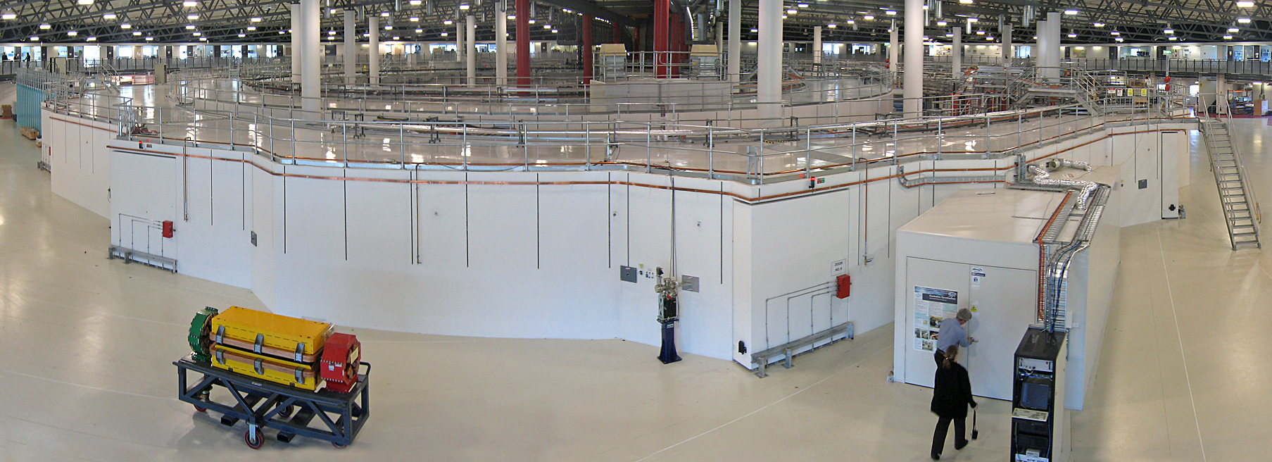 Elektronensynchrotron in Clayton bei Melbourne (Australien). Sichtbar sind der Speicherring und rechts im Vordergrund eine beamline zur Nutzung der Synchrotronstrahlung