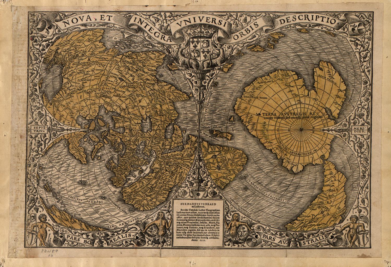 Weltkarte des Orontius Finaeus aus dem Jahr 1531, Südhemisphere mit hypothetischer Terra Australis