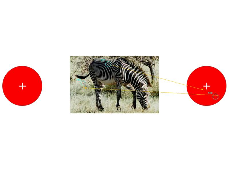 Gezielte Auswahl: Schon Säuglinge mit sechs Monaten lernen schnell, den richtigen virtuellen "Knopf" für ein Tierbild zu bedienen. (Zahlen zeigen die Fixationsdauer der markierten Punkte in Millisekunden) Quelle: Bild: FIAS (idw)